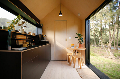 Undoubtedly you get the best of both worlds with the Barrington Tops Cabin; camping with the luxury of a tiny home. An off-grid cabin built to be simple, sustainable and movable which meets the mark. The large glass doors in this tiny cabin gives a genuine camping experience. Not to mention, this home has just the basics of what you need with not a lot of extraneous detail. This home shines in it’s simplicity. Just like the key factor of what makes camping fun: the simplicity of the moment.