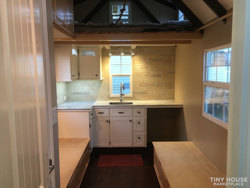 The view from the loft is my favorite in this home. You can literally see the whole home from the loft. The added carpet and peekaboo windows adds to its comfort. This home is a classic in the Tiny House Movement. It is also perfect for single people trying to live tiny. We tend to be obsessed with space; but one person can live very comfortably in the Robyn.